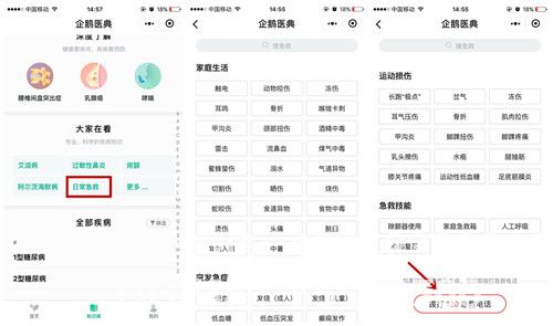 另外,「知识库」,有两个模块“每个人都在看”和“所有疾病”供您理解,“我们正在观看”传播日常急救知识,并为危及生命的情况提供120个拨号按钮。拨号快捷方便。